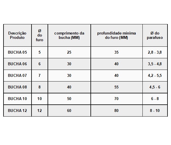 Possui aletas e trava anti giro evitando que a bucha rode dentro do furo